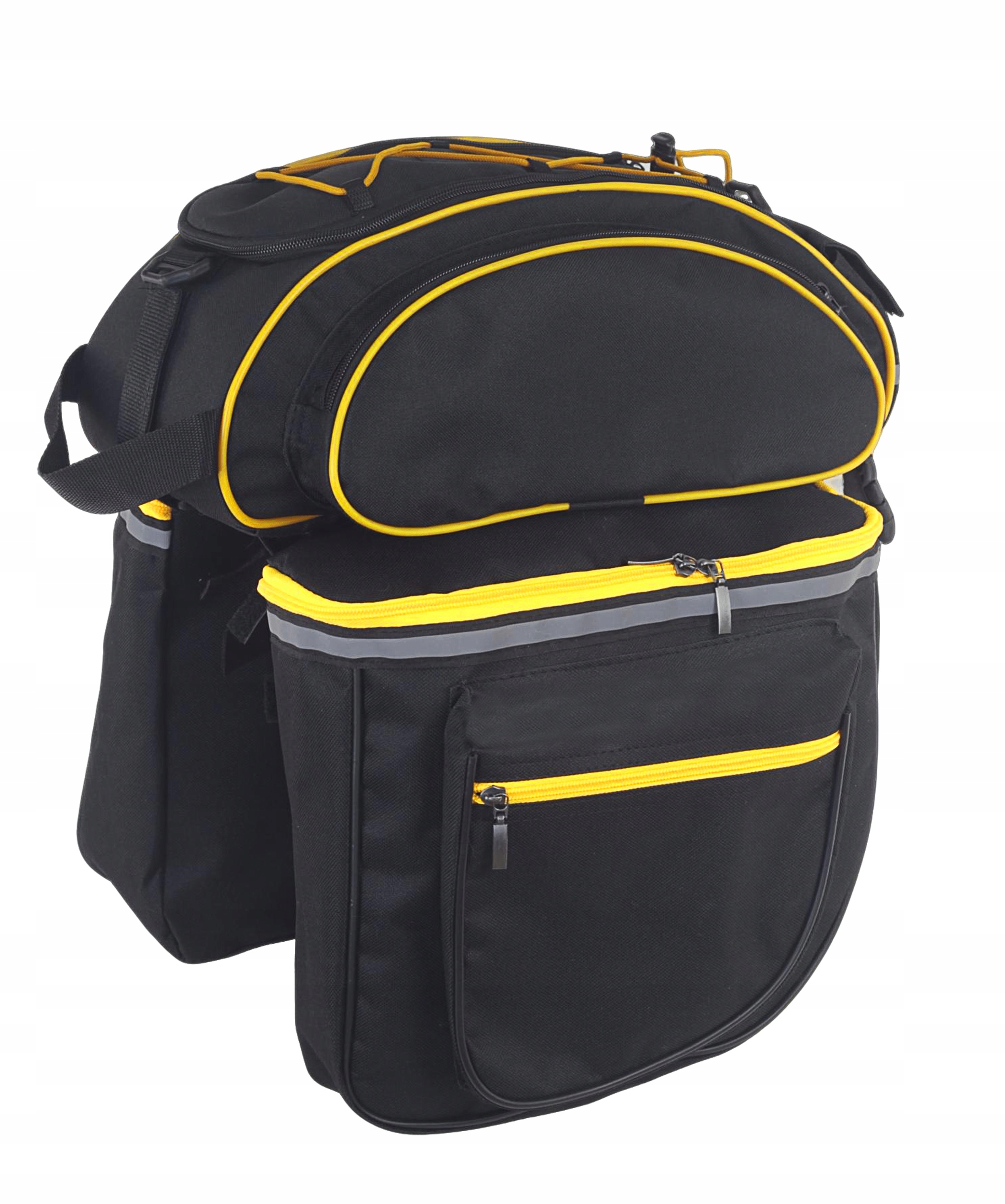 W torbie znajdują się dwie główna komory, do której można włożyć wszystkie najpotrzebniejsze rzeczy, które chcemy mieć przy sobie podczas jazdy rowerem. Po bokach znajdziemy dwie kieszenie zapinane na wygodne suwaki. Kieszenie boczne są bardzo wygodne i pojemne.