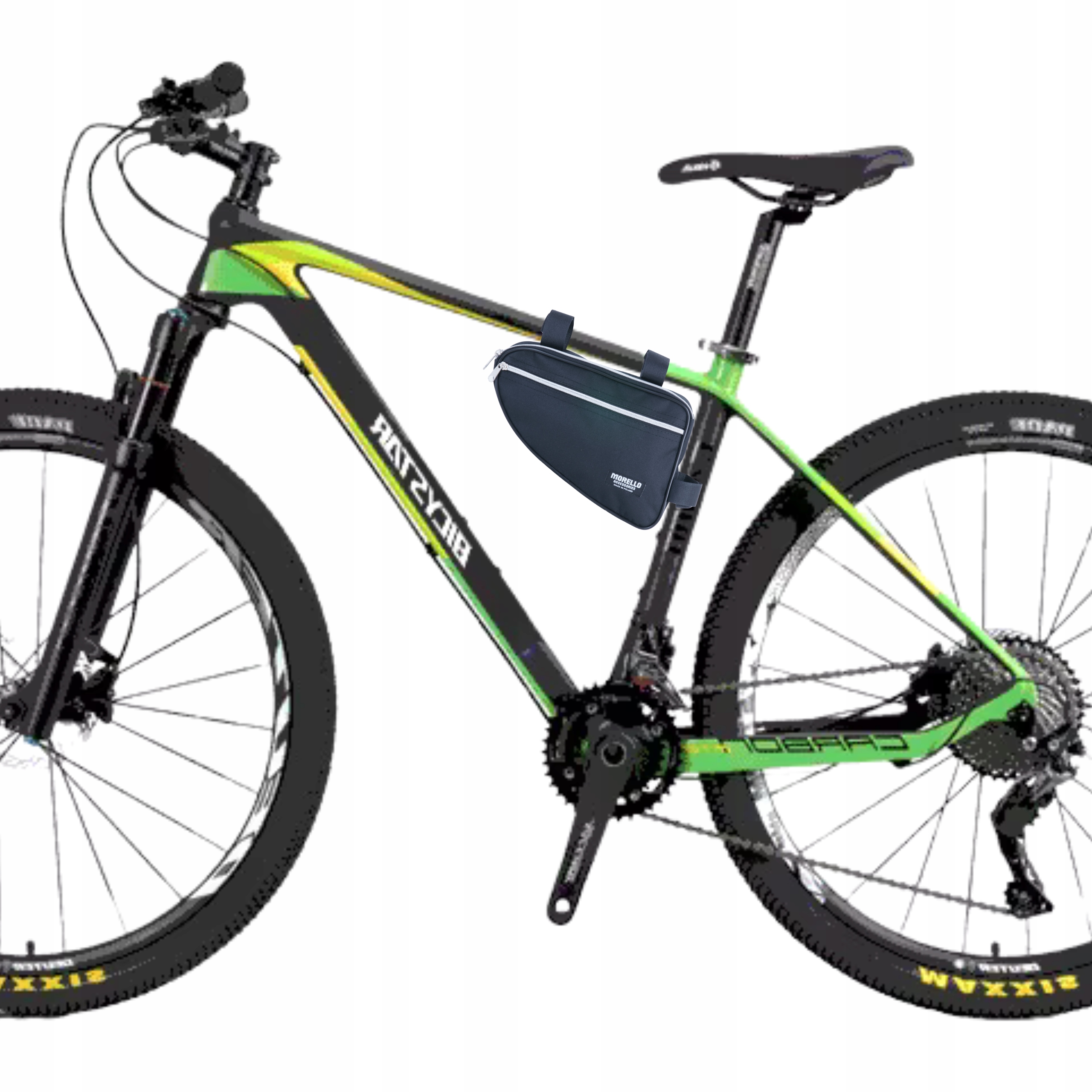 Sakwa montowana jest do ramy za pomocą trzech mocnych rzepów, co gwarantuje stabilność nawet podczas jazdy w terenie. Montaż i demontaż są błyskawiczne – wystarczy kilka sekund, by przymocować lub zdjąć torbę.