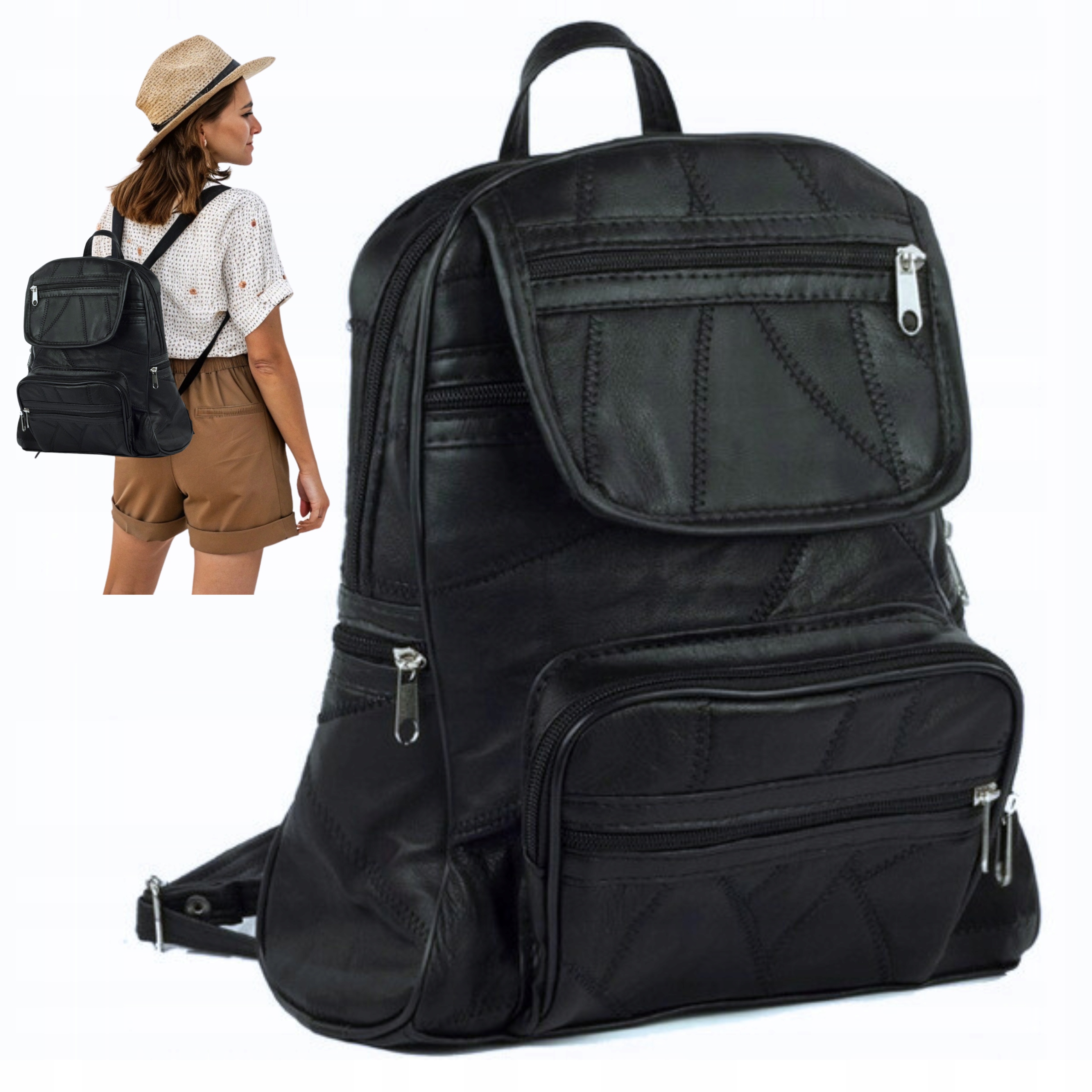 ✅ Funkcjonalność: Jedna duża komora główna zapinana na zamek + wewnętrzna kieszonka na zamek. Na zewnątrz aż 7 dodatkowych kieszonek na zamek (z przodu, tyłu i po bokach) – idealne na drobiazgi.