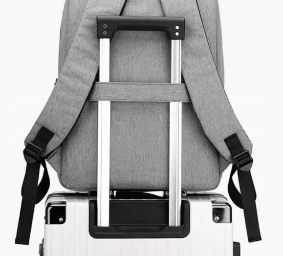 #️⃣ Z tyłu plecaka znajduje się obejma, która umożliwia założenie go na rączkę walizki