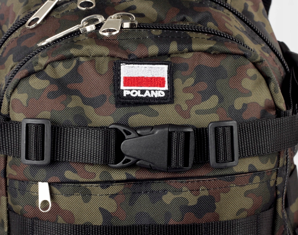 Wykonany z Cordury oraz poliestru kompaktowy plecak militarno-survivalowy – funkcjonalny i niezawodny, zaopatrzony w systemowy układ taśm, dużą ilość przegród i kieszeni.